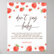 Póster Baby Shower de fresa no dice Rótulo de juego para