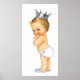 Póster de baby shower de principito adorable con principito usando pañal azul bebé, zapatillas y corona plateada. Este dulce póster de baby shower de principito hace un gran regalo o adición a la guardería del bebé. Puedes agregar texto, un color de fondo y elegir el tipo de papel o incluso lienzo.