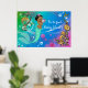 Poster de ducha de bebé sirena con adorable sirena de bebé étnica y peces de oro de bonito y caballitos de mar sobre un hermoso rosa, verde y azul bajo el fondo del mar. Este poster de sirena de bonito se puede personalizar con el texto en el estilo de letra y el color de su elección, o se puede borrar el texto de ejemplo y agregar un marco y una alfombra para una hermosa guardería o una impresión de habitación para niños.