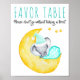 Póster Baby Shower Elephant on the Moon Favor Table Sign