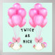 Creative girl twins baby shower and/or nursery decoration featuring twin baby girls and pink balloons.