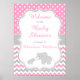 Póster Baby Shower rosa y gris elefante