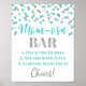 Poster de signos de barra de Momosa para la ducha de bebé con un patrón de confeti blanco, azul claro y plata con letras de estilo manuscrito. Perfecto para las duchas y la rociada de bebés.