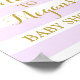 Bienvenido al poster de señas de Baby Shower con nombre personalizado en lavanda clara color púrpura y rayas blancas con confeti de efecto purpurina oro, por favor tenga en cuenta que el oro es sólo efecto fotográfico.