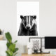 Póster Badger Woodland Retrato moderno blanco negro