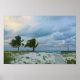 "Bahama respira al atardecer, Treasure Cay" por Catherine Sherman. Una brisa sopla frondas de palmeras en una playa de Treasure Cay en la isla de Great Abaco en las Bahamas al atardecer. Esta fotografía fue tomada en noviembre de 2017.