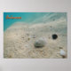 Una decoración tropical con una fotografía luminosa de arena submarina y agua turquesa. :)