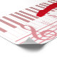 Bailarina de ballet roja en un teclado rodeada de notas musicales, sostenidos, bemoles y una clave de sol