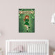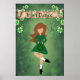 Este poster de danza irlandesa cuenta con una bailarina irlandesa de pelo castaño con un fondo de shamrock verde.
