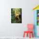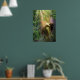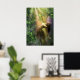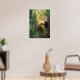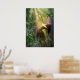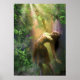 Bailando con luz de cal, un Hada brilla en la ducha radiante de un bosque encantado. Un lagarto verde gecko mira.
