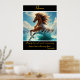 Un cautivador caballo de castaño corre a través de agua turquesa clara, enviando salpicaduras brillantes en todas direcciones. Su caudal de recursos y su energía dinámica evocan una poderosa sensación de libertad y resiliencia. Un tranquilo cielo azul salpicado de suaves nubes blancas crea un ambiente sereno. La palabra "honor" aparece de manera prominente en la parte superior de la lista en un elegante guión amarillo, simbolizando la dignidad y la fuerza. Debajo del galopante caballo, la perspicaz cita de Aristóteles — "La dignidad no consiste en poseer honores, sino en merecerlos". — está artísticamente inscrita en una fuente amarilla, enmarcada por audaces bordes negros para un acabado pulido.
