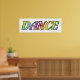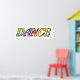 Colores de arcoíris brillantes y prismáticos adornados detrás de la palabra "baile".