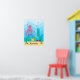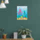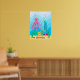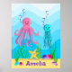 Un bonito póster que muestra un pulpo rosa, una medusa turquesa y una estrella de mar amarilla disfrutando de un baño bajo el mar. Personalízalo con tu nombre elegido o déjalo sin él.