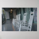 Fotografía de una hilera de mecedoras blancas en la Plantación Myrtle de Luisiana.