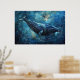 Póster Ballenas azules nadando en el mar