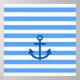 Anclaje y franjas en color azul y blanco. Diseño náutico. Decoración con colores náuticos. Para los amantes del océano y de la vela
