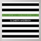 Personalice este moderno y amplio poster horizontal de rayas blancas y negras con una franja verde tipo purpurina añadiendo el nombre de cualquier chica. Esta estampada de rayas gráficas de moda es perfecta para la moda de moda. Imagen plana impresa, NO purpurina real.