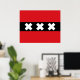 Este diseño presenta la bandera de la capital holandesa de Ámsterdam. La bandera representa tres cruces de San Andrés y se basa en el escudo de Amsterdam. El periodista de diseño Roman Mars declaró que, en 2015, era la bandera de la ciudad más "dura" del mundo. AFC Ajax, un equipo de fútbol con sede en Ámsterdam que juega en la Eredivisie holandesa, usa la bandera de Ámsterdam como brazalete de su capitán. Ámsterdam se conoce coloquialmente como la "Venecia del Norte", debido al gran número de canales que forman parte del Patrimonio Mundial de la UNESCO.
