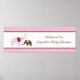 Póster Bandera de Baby Shower Rosa con Puntada de Elefant