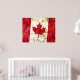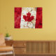 Este elemento tiene un estilo angustiado Bandera canadiense en un ligero ángulo. La bandera tiene barras verticales, rojas y blancas en una textura áspera y la hoja de arce canadá en el centro.