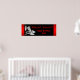 Elegante pancarta de cumpleaños de mujer con zapatos de tacón alto de purpurina negra y roja y copa de champán. Puedes personalizar esta pancarta de fiesta de zapatos de tacón alto rojo con el texto de tu elección en el estilo de letra y color que desees.