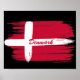 La moderna impresión poster muestra el ilustracion artístico de la bandera nacional de Dinamarca sobre el fondo negro con el texto rojo