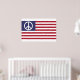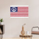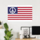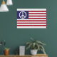 Este diseño presenta una variante de la bandera nacional de los Estados Unidos de América con un signo de paz blanco en el cantón azul arriba a la izquierda. Se puede ver como un emblema del activismo antibélico, que simboliza la esperanza de un mundo mejor.