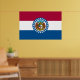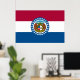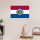 Este diseño presenta la bandera de Misuri, un estado del medio oeste de Estados Unidos. Misuri está limítrofe con ocho estados (la mayoría con Tennessee): Iowa al norte, Illinois, Kentucky y Tennessee (a través del río Misisipi) al este, Arkansas al sur y Oklahoma, Kansas y Nebraska al oeste. En el sur se encuentran los Ozarks, una sierra boscosa que provee madera, minerales y recreación. El río Misuri, que lleva el nombre del estado, fluye a través del centro del estado hacia el río Misisipi, que constituye la frontera oriental de Misuri. La capital de Misuri es Jefferson City, mientras que la ciudad más grande de Misuri es Kansas City; otras ciudades importantes de Misuri son St. Louis, Springfield, Columbia, Independence, Lee's Summit, O'Fallon, St. Joseph, St. Charles y St. Peters.
