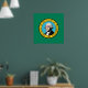 Este diseño presenta la bandera del estado de Washington, que está ubicado en la región noroeste del Pacífico de los Estados Unidos. Su nombre proviene de George Washington (1732-1799), el primer presidente estadounidense. A Washington se le suele llamar Estado de Washington para distinguirlo de la capital de la nación, Washington DC. La bandera representa el sello del estado, que contiene una imagen del nombre de estado George Washington, en un campo de verde oscuro. Es la única bandera de los Estados Unidos con un campo verde; también es la única bandera de estado que contiene la imagen de un presidente norteamericano.