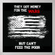 Expresa tu conciencia anti-guerra con este póster de la bandera estadounidense que se opone a la guerra y apoya alimentar a los hambrientos en su lugar. Cuenta con una bandera estadounidense angustiado en estilo de arte grunge con el eslogan de texto "Tienen dinero para las guerras pero no pueden alimentar a los pobres."
