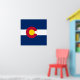 Este diseño presenta la bandera del estado de Colorado, que es una zona del oeste de Estados Unidos que contiene la mayoría de las montañas rocosas del sur, así como la parte noreste de la meseta de Colorado y el borde oeste de las Grandes Llanuras. A veces se le conoce como el Estado del Centenario, y su lema es "cero sine numine", que significa "nada sin providencia". La bandera fue diseñada por Andrew Carlisle Carson en 1911. El azul de la bandera representa los cielos claros, el oro representa el sol brillante que disfruta el estado, el blanco representa las montañas nevadas y el rojo representa la tierra rudimentaria. La letra C en la bandera, por supuesto, significa Colorado. La capital del estado de Colorado es Denver, que también es la ciudad más grande del estado. Otras ciudades y pueblos importantes de Colorado son Colorado Springs, Aurora, Fort Collins, Lakewood, Thornton, Arvada, Westminster, Pueblo, Centennial, Boulder, Greeley, Longmont, Loveland y Broomfield.