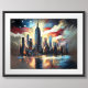 Bandera Patriótica de los Estados Unidos sobre la ciudad Skyline América La relación de aspecto es de 4:3.