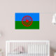 Este diseño cuenta con la bandera romaní, que es la bandera internacional del pueblo romaní. La bandera consiste en un fondo azul y verde que representa el cielo y la tierra, respectivamente; también contiene una chakra roja de 16 radios, o volante, en el centro, que representa la tradición itinerante del pueblo romaní y también es un homenaje a la bandera de la India. La bandera fue aprobada por los representantes de varias comunidades romaníes en el primer Congreso Mundial Romaní (WRC), celebrado en Orpington en 1971.