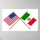Póster Banderas cruzadas de Estados Unidos y México