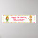 ¡Celebra con canciones y bailes! Esta pancarta fiesta es perfecta para un fiesta musical de temática mexicana con sus elementos coloridos y luminosos. El cartel incluye a dos niños con sombrero, gorras de palma ancha con un patrón de triángulo geométrico. El chica balancea con un par de maracas mientras el niño toca la guitarra. Los chiles decoran las esquinas de la pancarta.