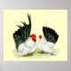 El blanco de cola negra es uno de los colores más antiguos del bantam japonés, con un contraste muy llamativo. También se les llama Chabos.