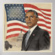 Barack Obama in front of US Flag and Capitol with muted colors and vintage vibes looking very stoic.