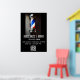 Una imagen fotográfica de barra de barbería de estilo retro rojo y azul sobre fondo negro. tiene un aspecto urbano que puede ser una gran herramienta de marketing para tu barbería u otro negocio de preparación para hombres. Personalizar este poster firma con los detalles de la empresa, incluido un código QR que puede utilizarse para señalar a sus clientes potenciales a sus cuentas de medios sociales o al sitio web de la empresa