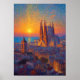 Póster Barcelona Sagrada Familia Pointillism Sunset Art