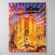 Barcelona, España, afiche de época Vintage Barcelona poster de textura metalizado oxidada y templo de la Sagrada Familia, iglesia