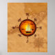 Póster Barco De Navegación Y Rosa De Brújula
