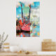 Este poster es una acuarela simulada de un barco pesquero atracado a lo largo de un río, todo escondido después de un día en el mar.