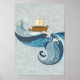Legendario buque de guerra de la dinastía Joseon de Corea cruza olas dramáticas. El trabajo original se creó en el collage de papel (por favor, tenga en cuenta que este poster/impresión es una reproducción digital). La imagen es de la portada trasera de THE TURTLE SHIP, un libro de fotos escrito por Helena Ku Rhee e ilustrado por Colleen Kong-Savage (Lee & Low Books), ganadora de honor Freeman en 2018 y entre la lista de los mejores libros infantiles de Bank Street en 2019.