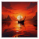 Una serena obra de arte que exhibe un velero en aguas tranquilas durante una puesta de sol rojo intenso, añadiendo un toque náutico y tranquilo a cualquier espacio o producto. Perfecto para los amantes de la puesta de sol y los marineros.