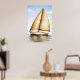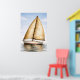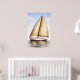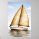 Un velero antiguo se desliza a través de aguas tranquilas bajo un cielo azul apagado, su vela representada en tonos cálidos beige con una textura sutil y única al estilo de un periódico. La vela llena y el casco bajo crean un punto focal náutico equilibrado, mientras que los suaves lavados y las suaves reflexiones dan a la pieza un ambiente costero tranquilo. Adecuada para hogares de playa, casas de lago y cabañas, esta pieza aporta una serena presencia marítima al espacio.