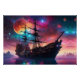 Las nebulosas coloridas en el cielo son un telón de fondo de bonito para este barco del espacio pirata que ha aterrizado en otro planeta con muchas lunas Arte AI de minx267