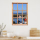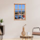 Esta vista de los barcos de pesca con luz natural desde un marco de ventana de madera es la que acompaña a los demás barcos del poster de la ventana del puerto. Muestra una escena en un puerto pesquero de bonito donde los barcos pintados esperan su próxima navegación. Compra a los posters en pareja y muéstralo a la izquierda (como ves la pared) de la otra para crear la apariencia de una vista real de 2 ventanas en tu pared!