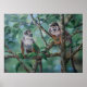 Los monos ardilla disfrutan de las vistas cerca de la cima de la selva. De una pintura original de la artista, Laura Regan