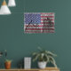 Image of an American flag painted on peeling barn wood for an antique vintage patriotic look.