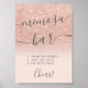 Letrero de barra de mimosa de boda con rubor ombre de brillo dorado rosa